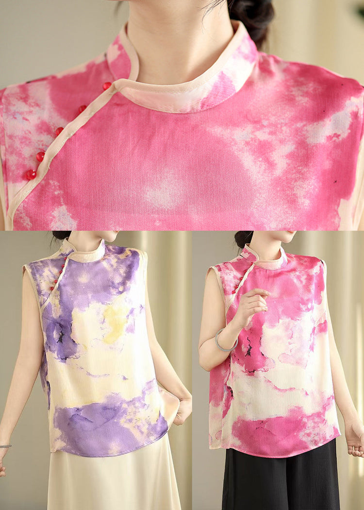 Beautiful Pink Mandarin Collar Tie Dye Silk Top Sleeveless