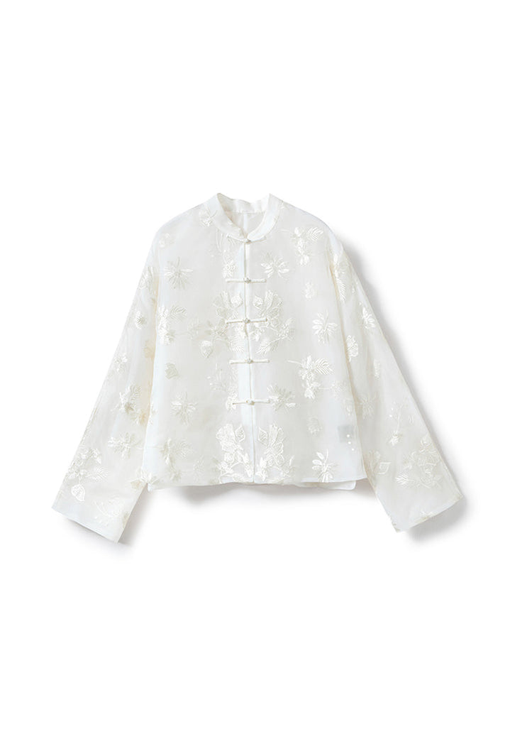 Chinese Style Stand Collar Embroidered Oriental Button Silk Shirts Fall