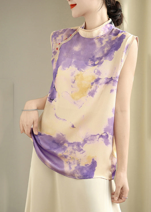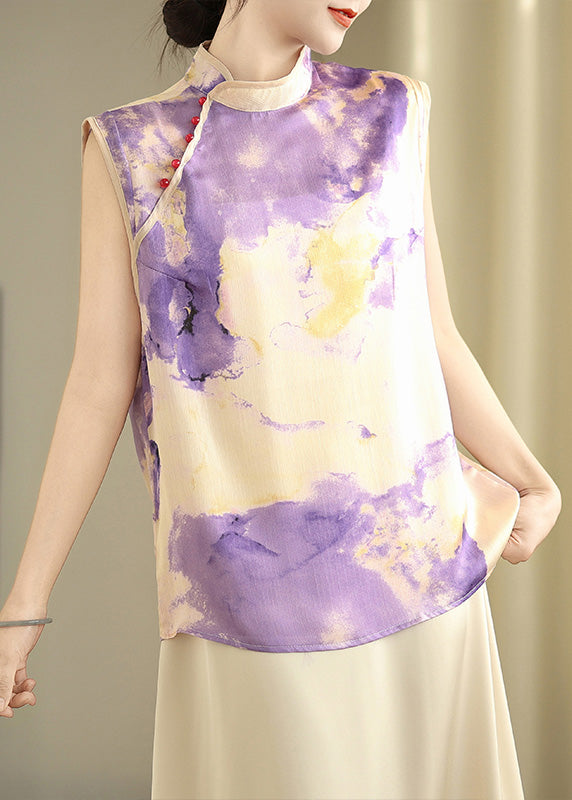 Lavender Tie Dye Silk Vests Chinese Button Sleeveless