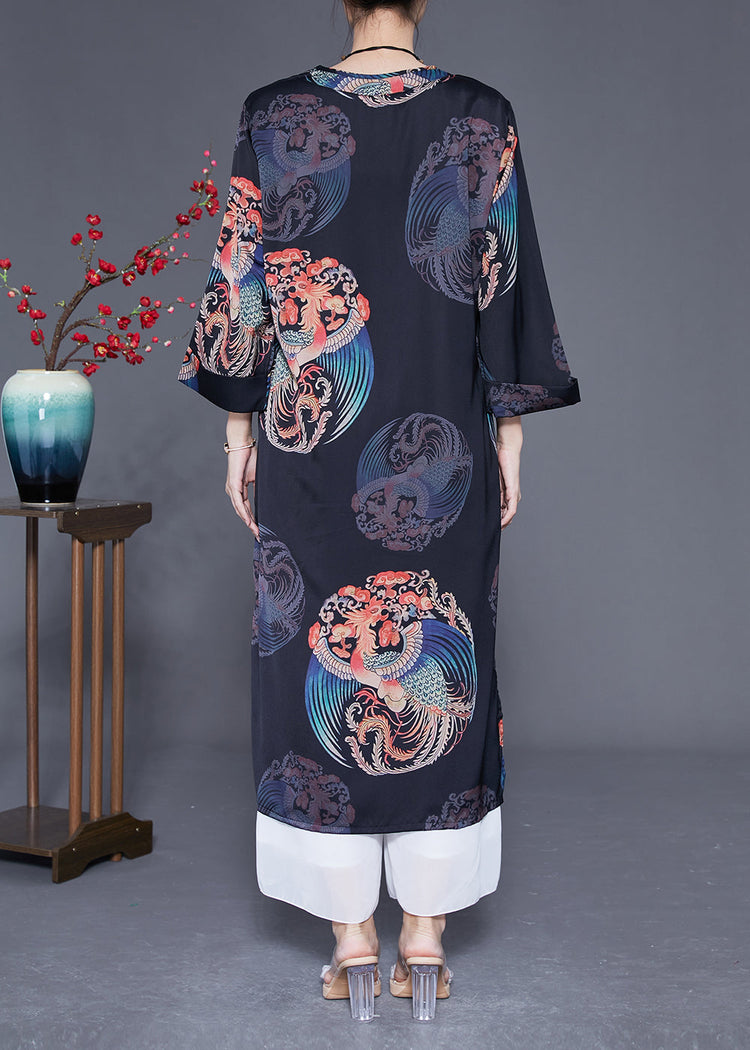 Diy Black V Neck Print Side Open Silk Dresses Bracelet Sleeve