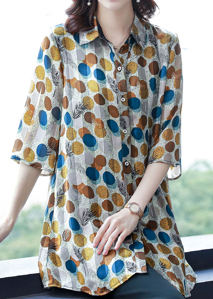 Fashion Dot Print Peter Pan Collar Button Silk Shirt Top Summer