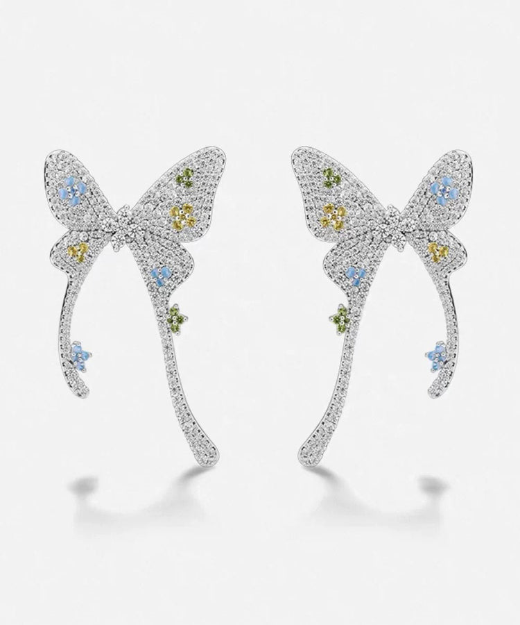 Fine Silk Copper Overgold Zircon Butterfly Stud Earrings