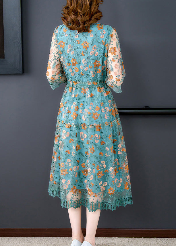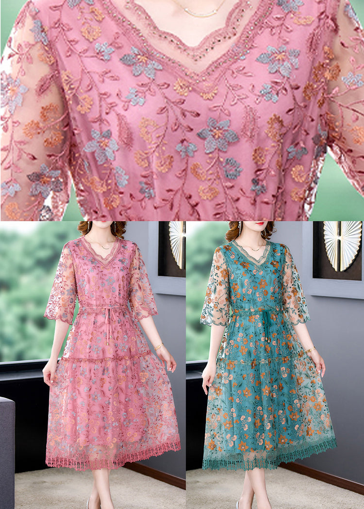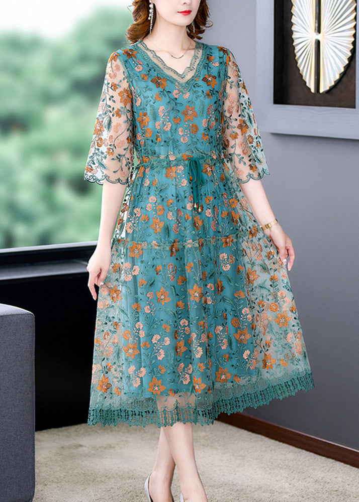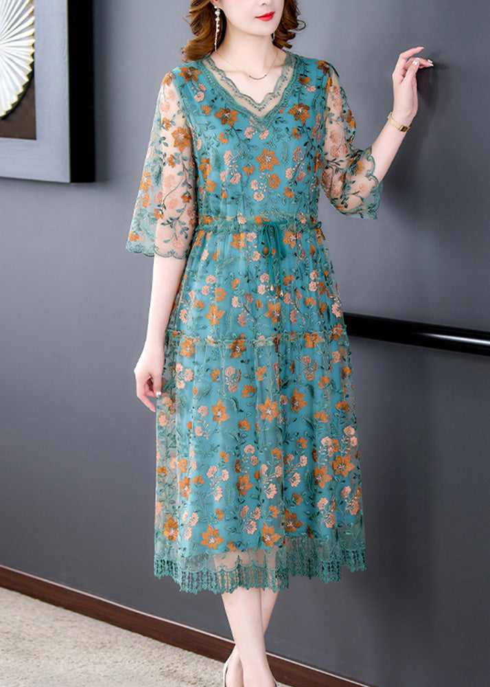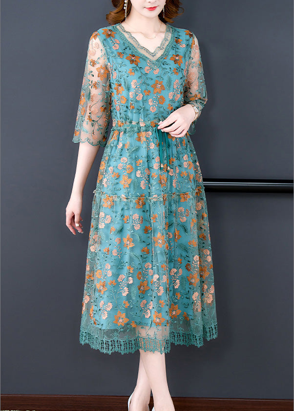 Green Patchwork Tie Waist Silk Maxi Dresses Summer