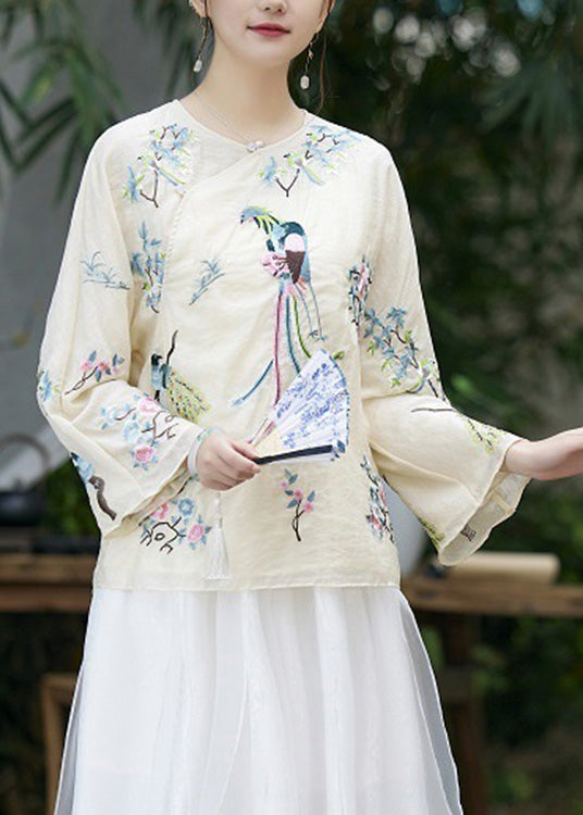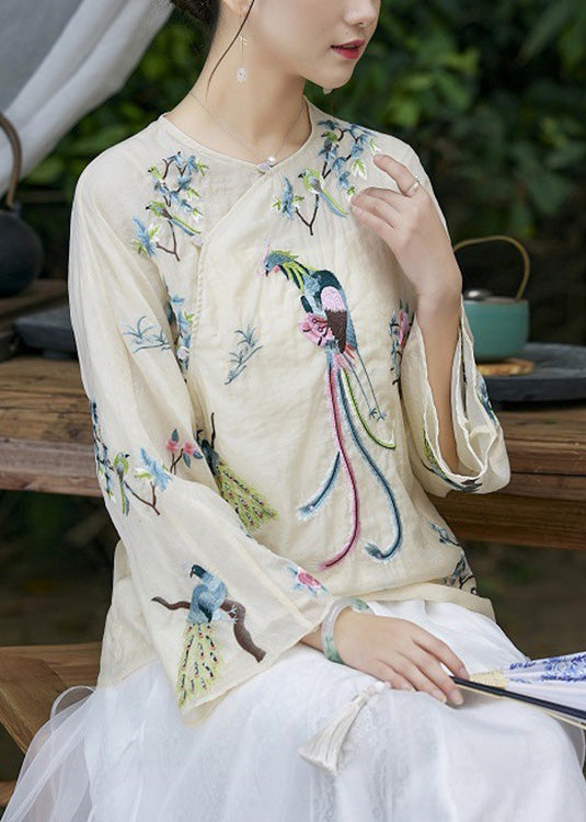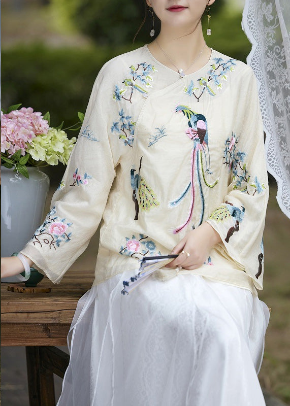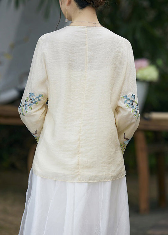 Italian Apricot Embroideried Button Silk Shirts Long Sleeve