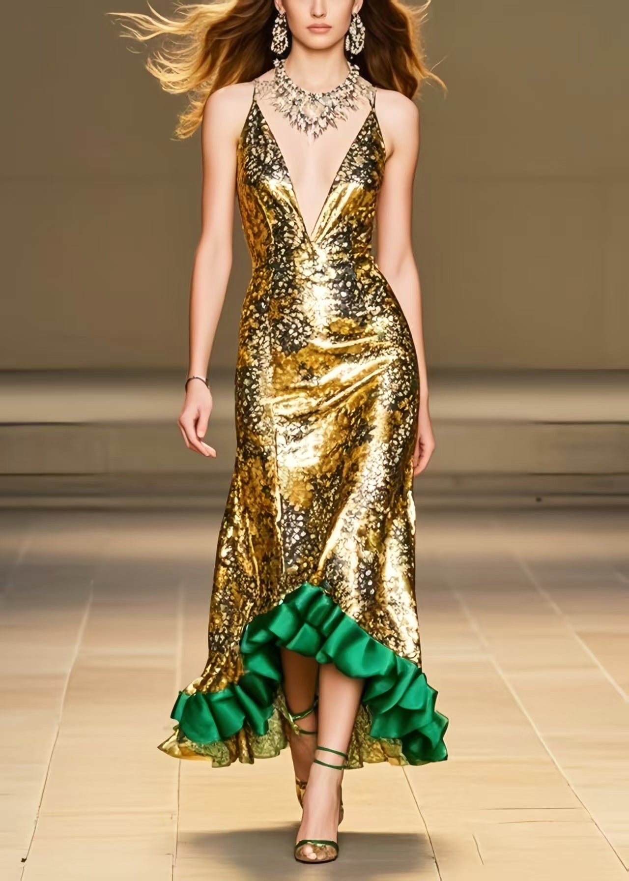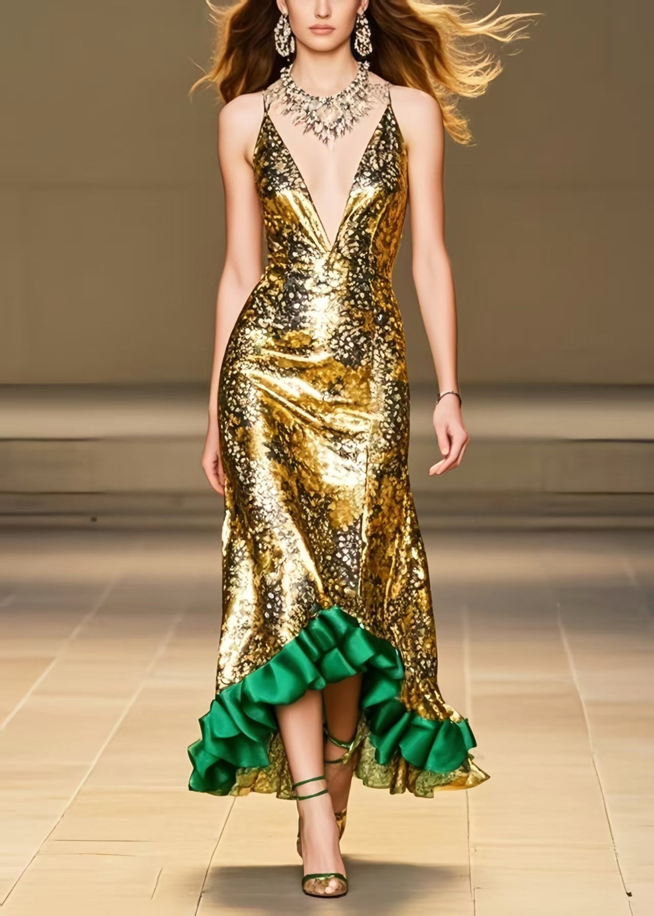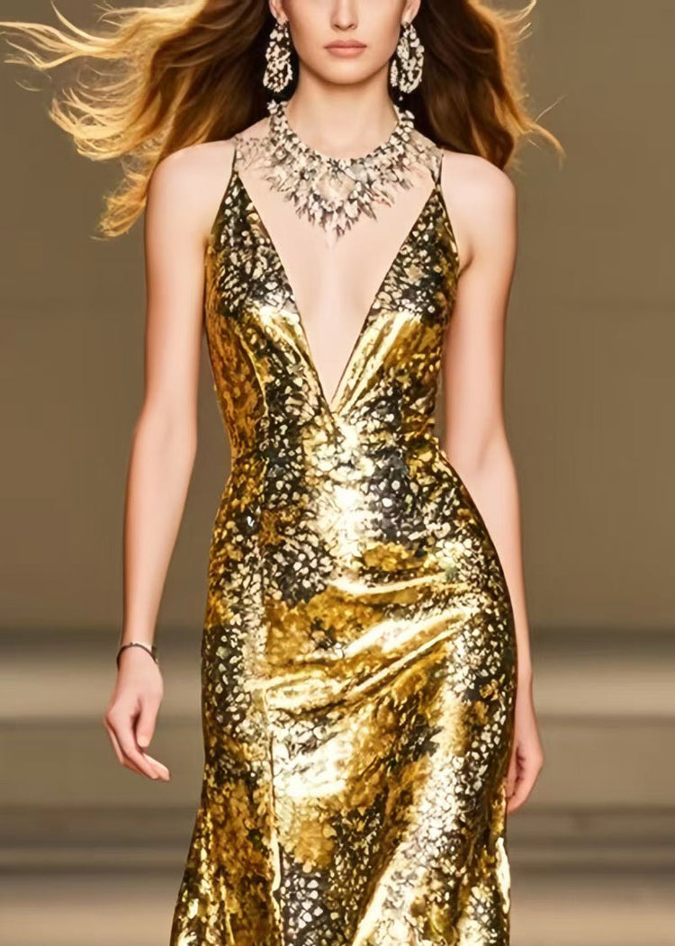 Italian Golden Ruffled Patchwork Silk Wraped Dress Summer