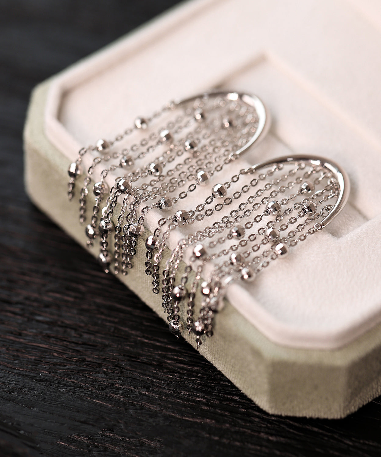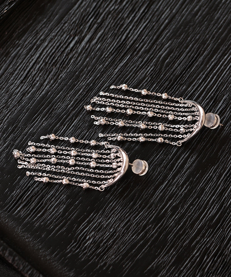 Loose Silk Sterling Silver Chain Tassel Drop Earrings