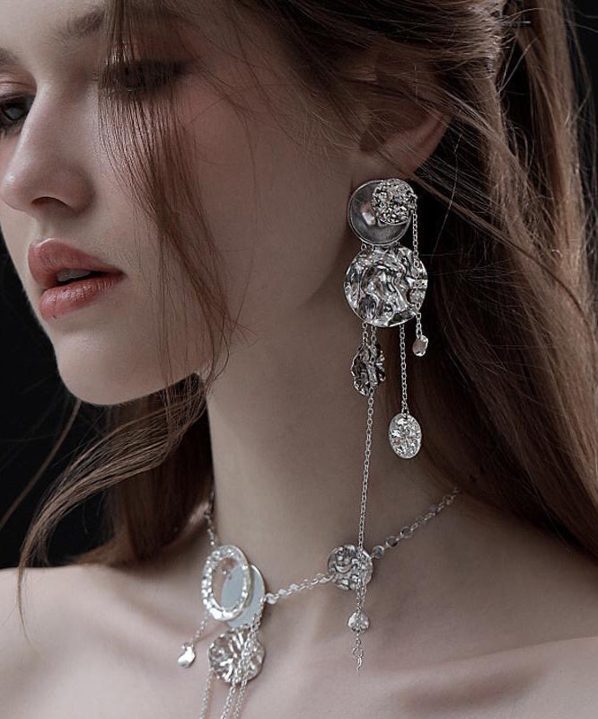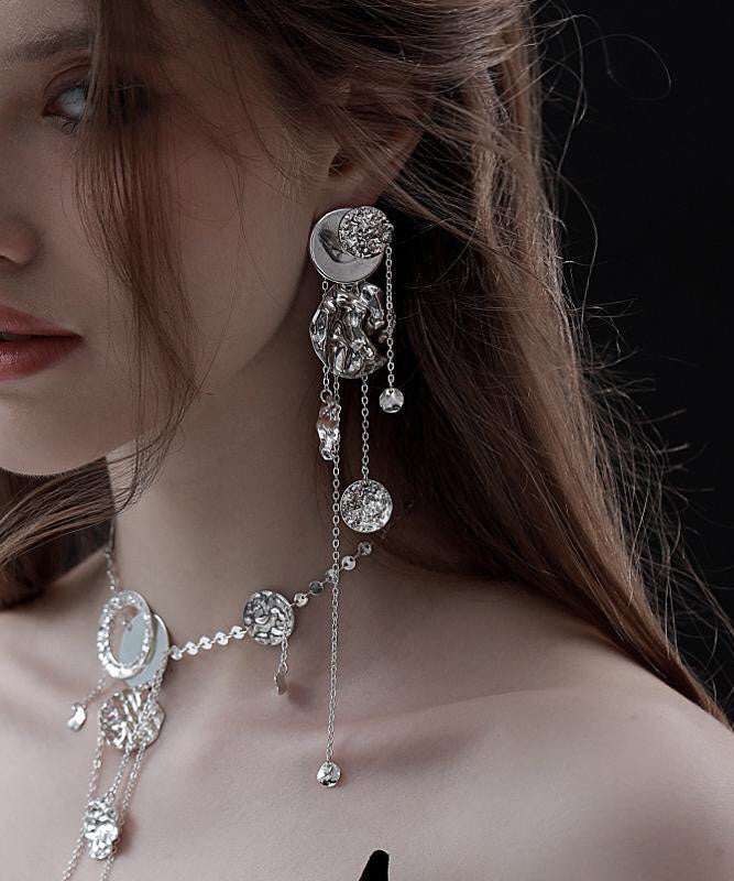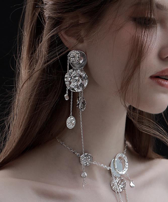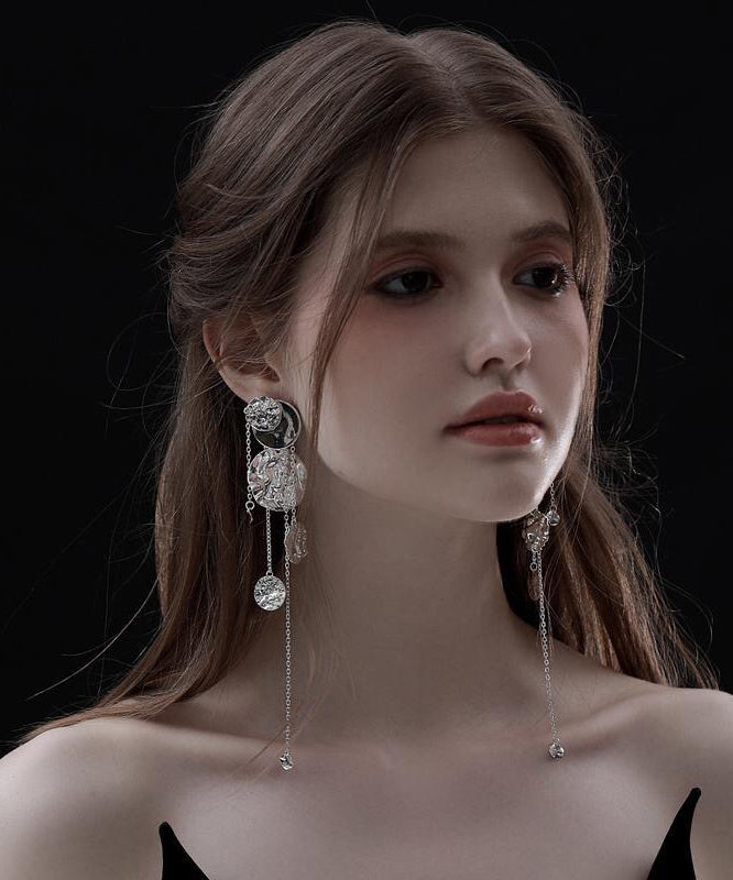 Original Design Silk Copper Wavy Disc Tassel Drop Earrings