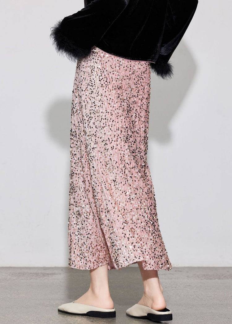 Stylish Purple Sequins Elastic Waist Silk Velvet Skirt Spring