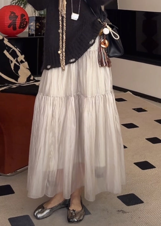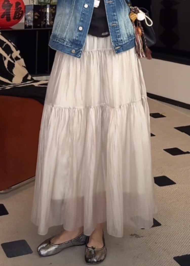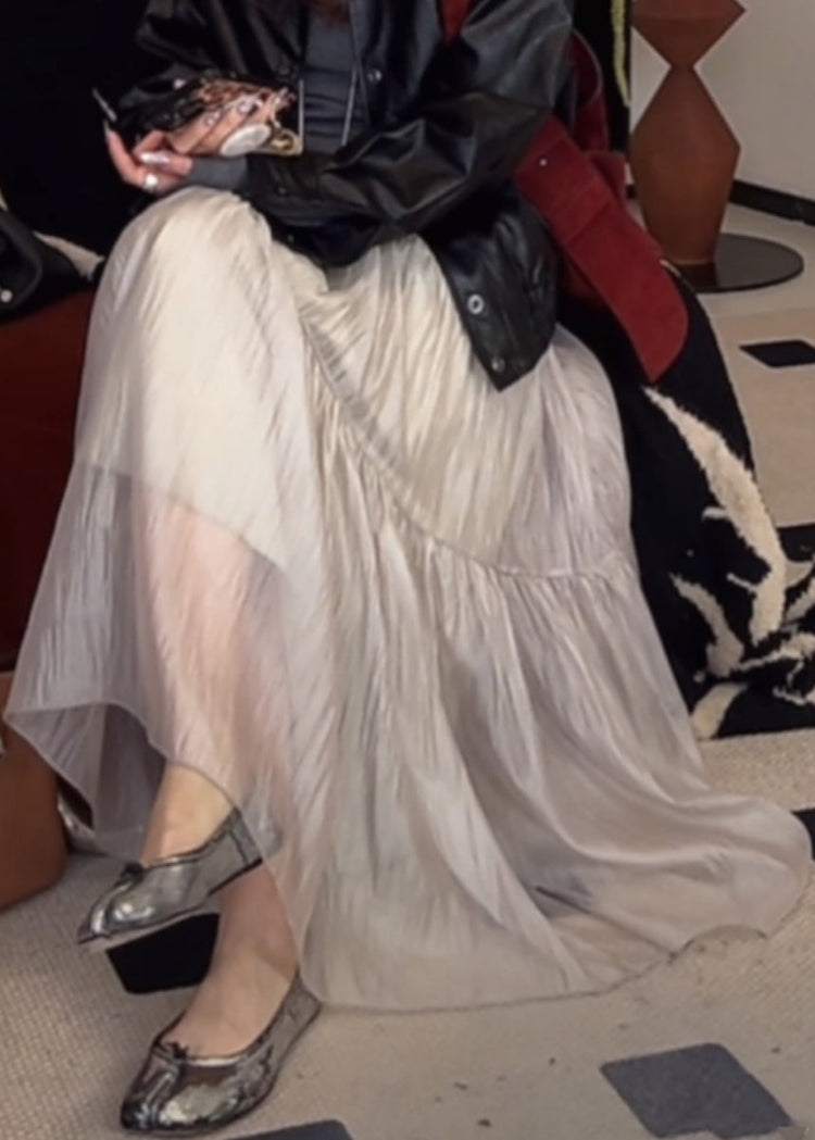 Women Light Grey Wrinkled Elastic Waist Silk Skirts Summer