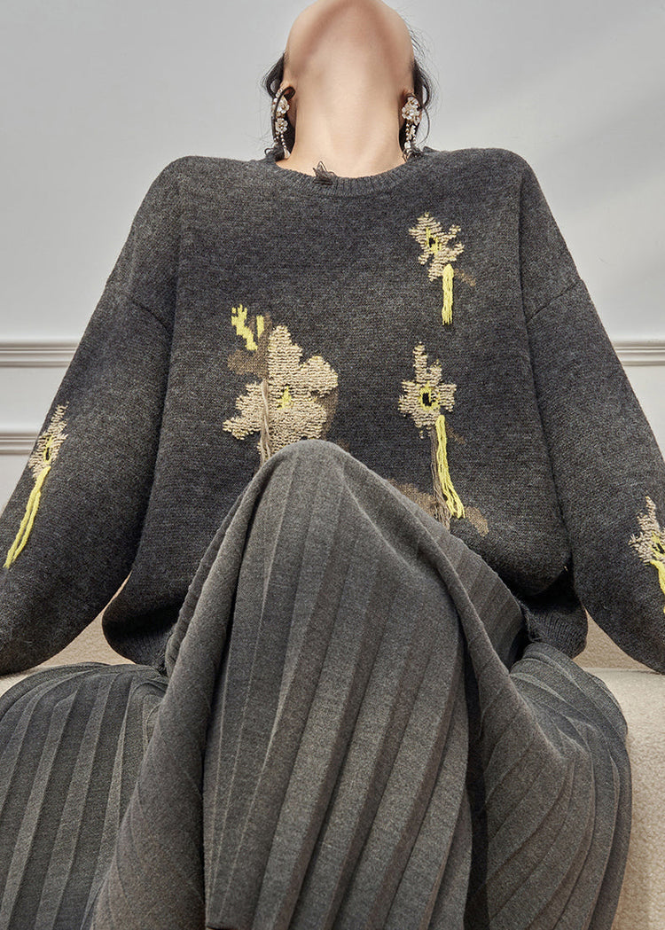 Jacquard Grey Hole Cozy Knit Sweater Tops Winter