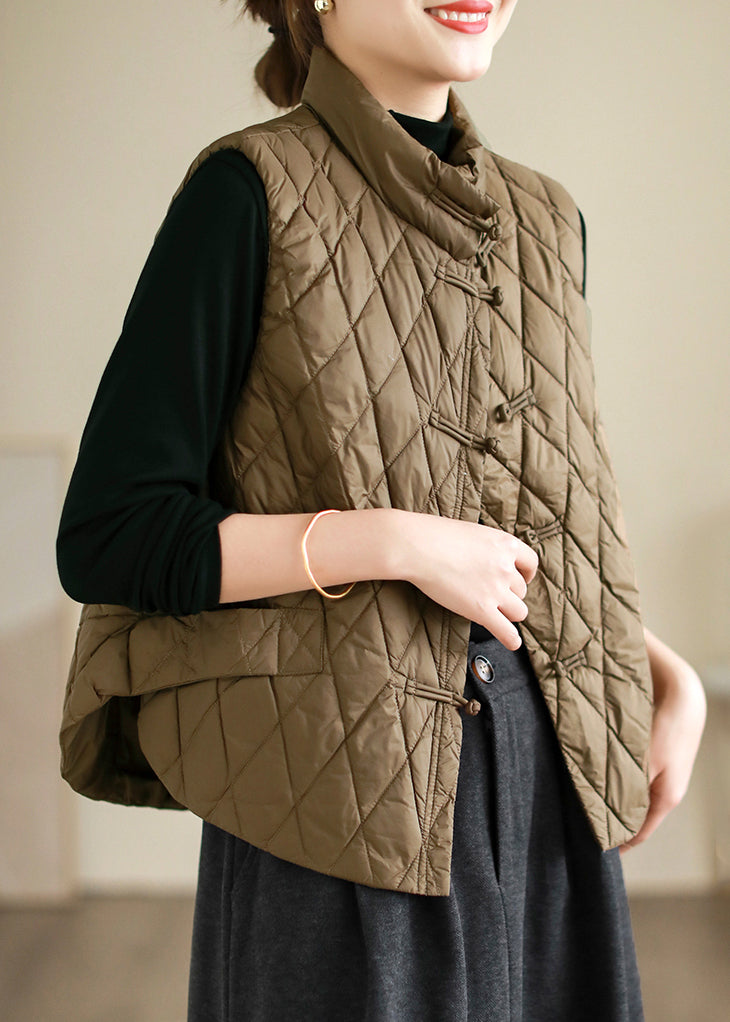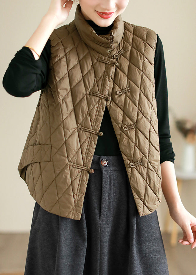 Italian Coffee Button Pockets Patchwork Thick Waistcoat Sleeveless