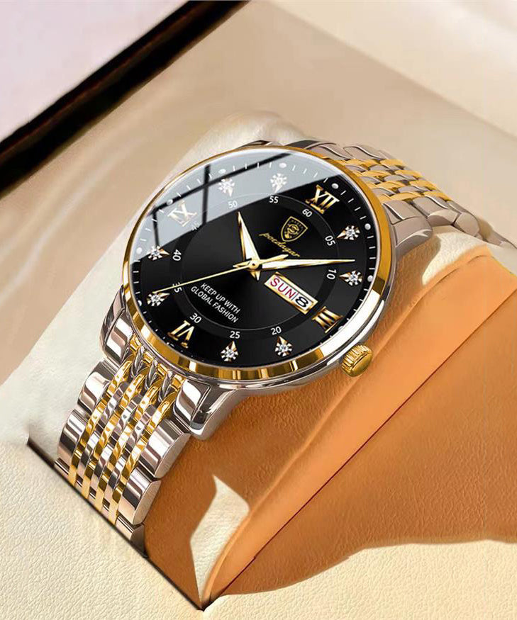 Fashion Black Stainless Steel Waterproof Noctilucent Watches