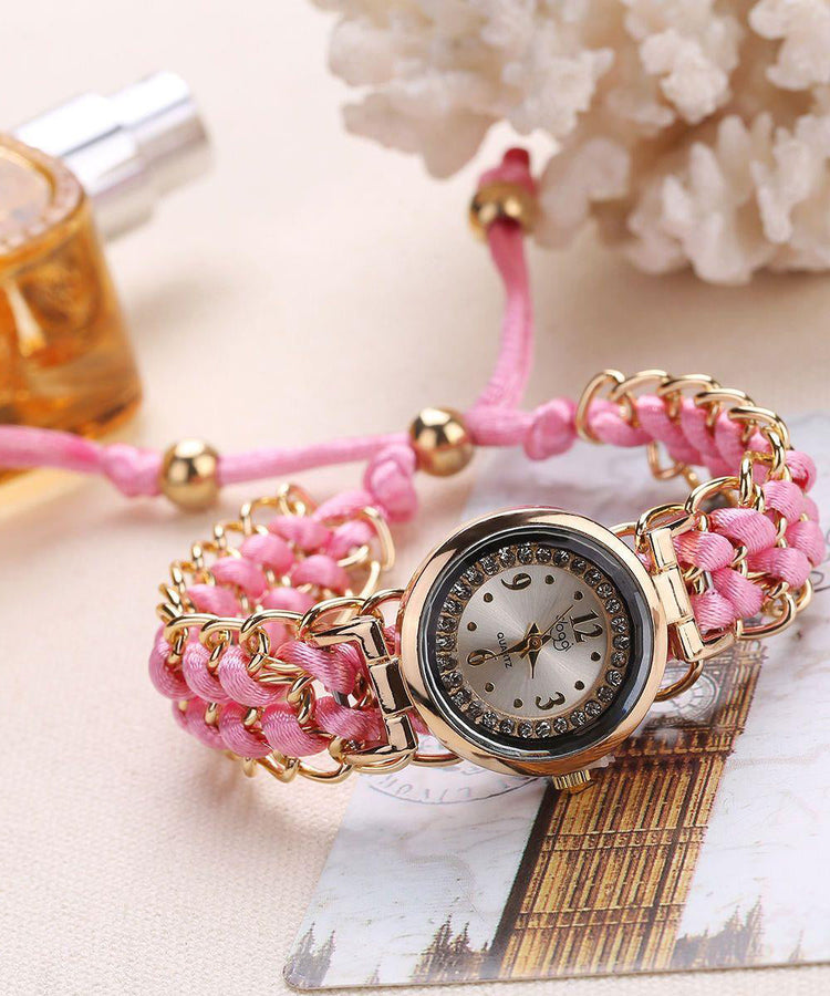 Handmade Red Alloy Zircon Weave Waterproof Watch
