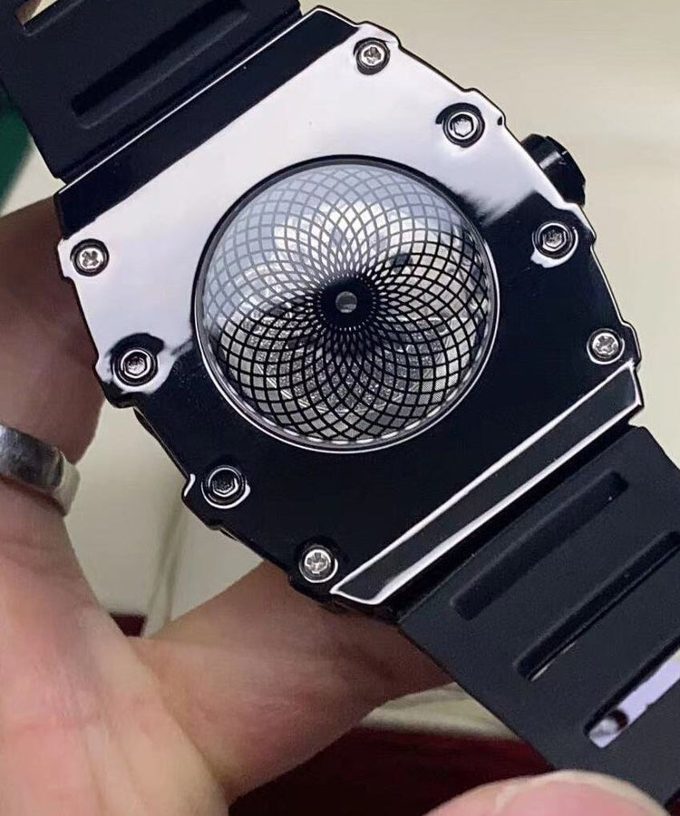 Stylish Black Alloy Hollow Out Fully Automatic Mechanical Waterproof Watch