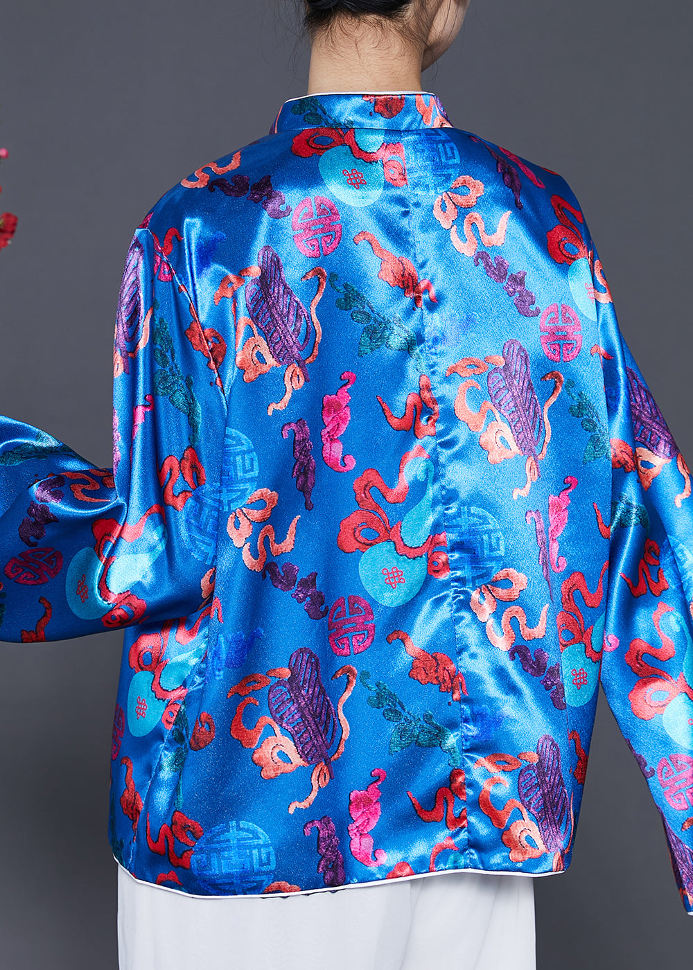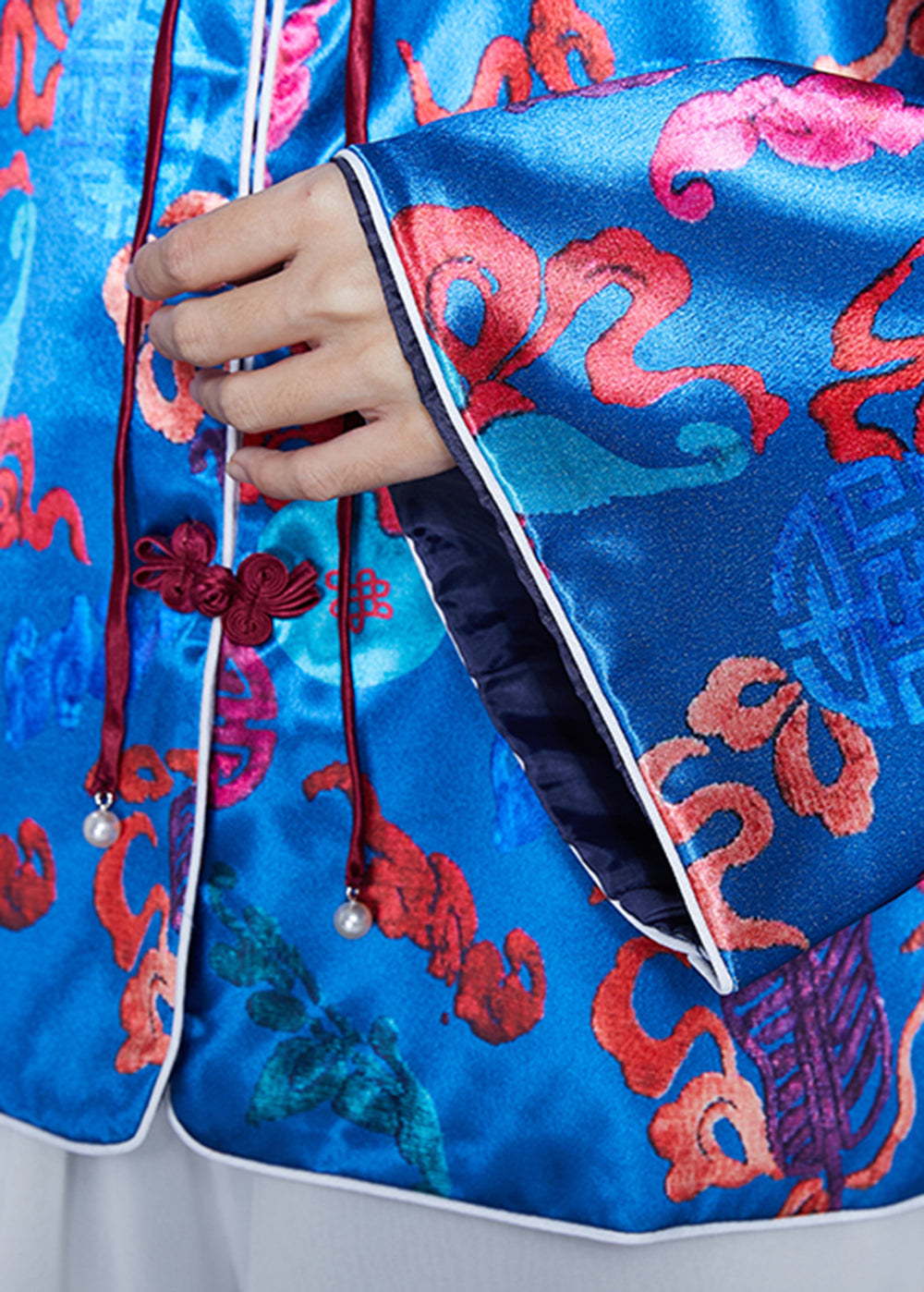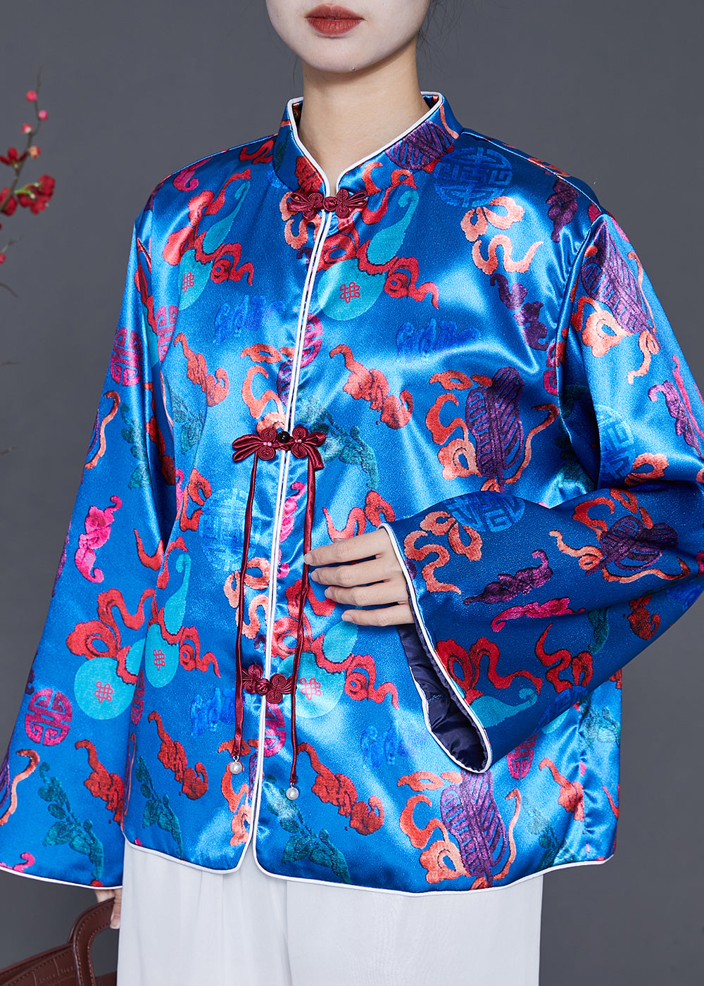 Boutique Blue Tasseled Jacquard Silk Coat Spring