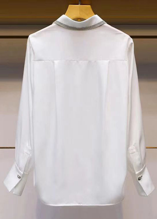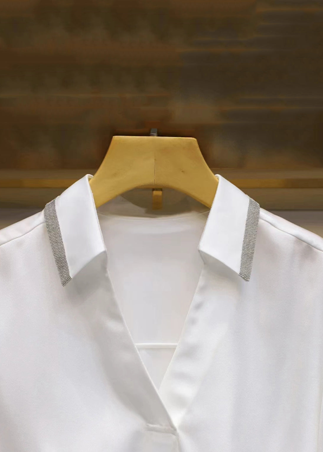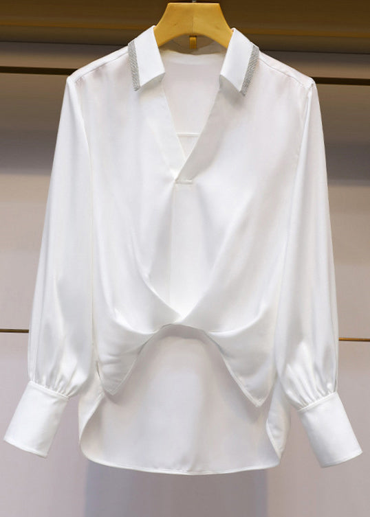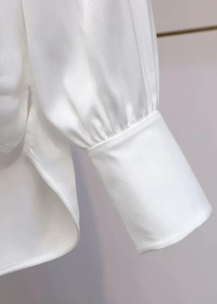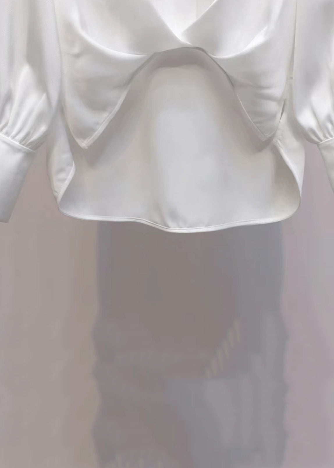 French White V Neck Low High Design Patchwork Cotton Shirts Fall
