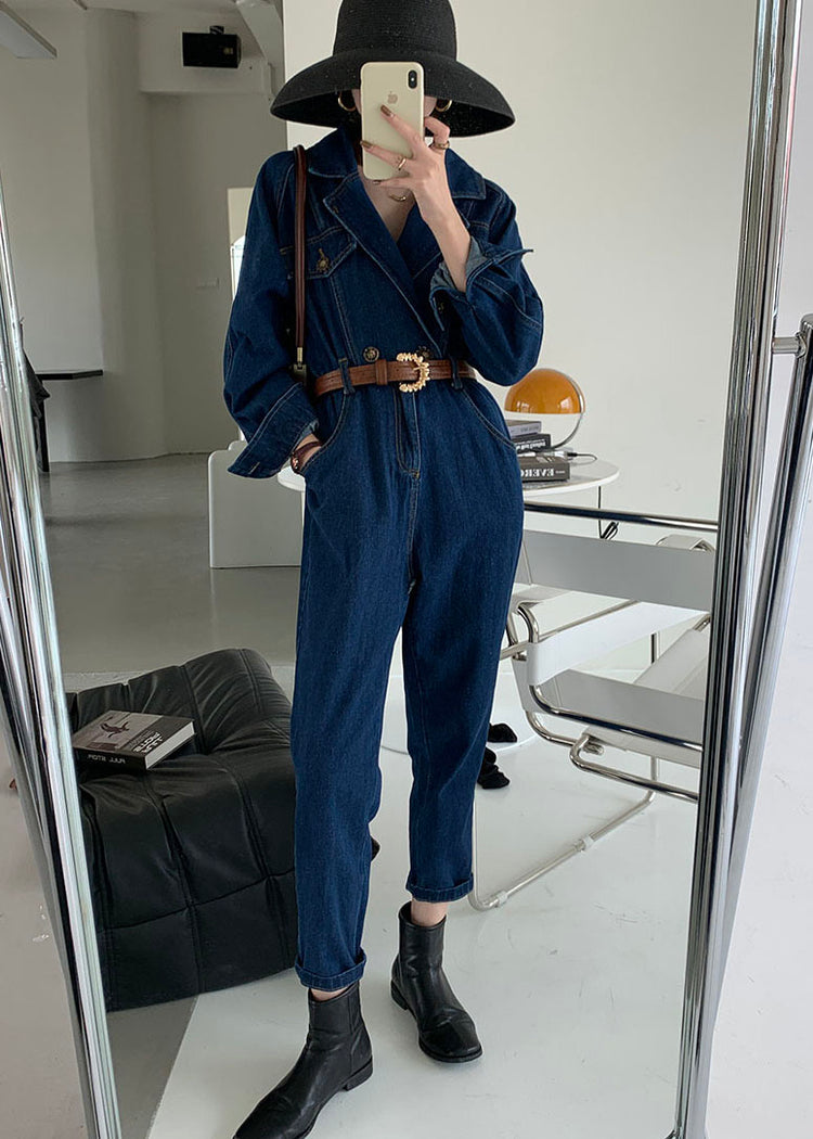Handmade Blue Peter Pan Collar denim Jumpsuit Spring