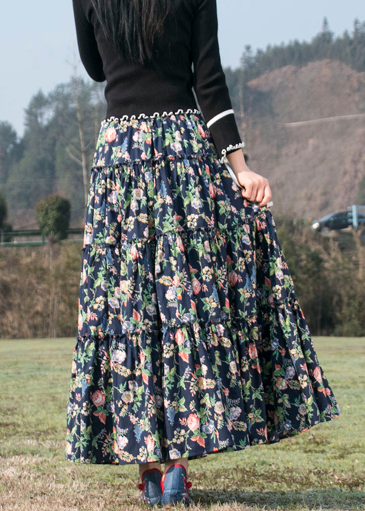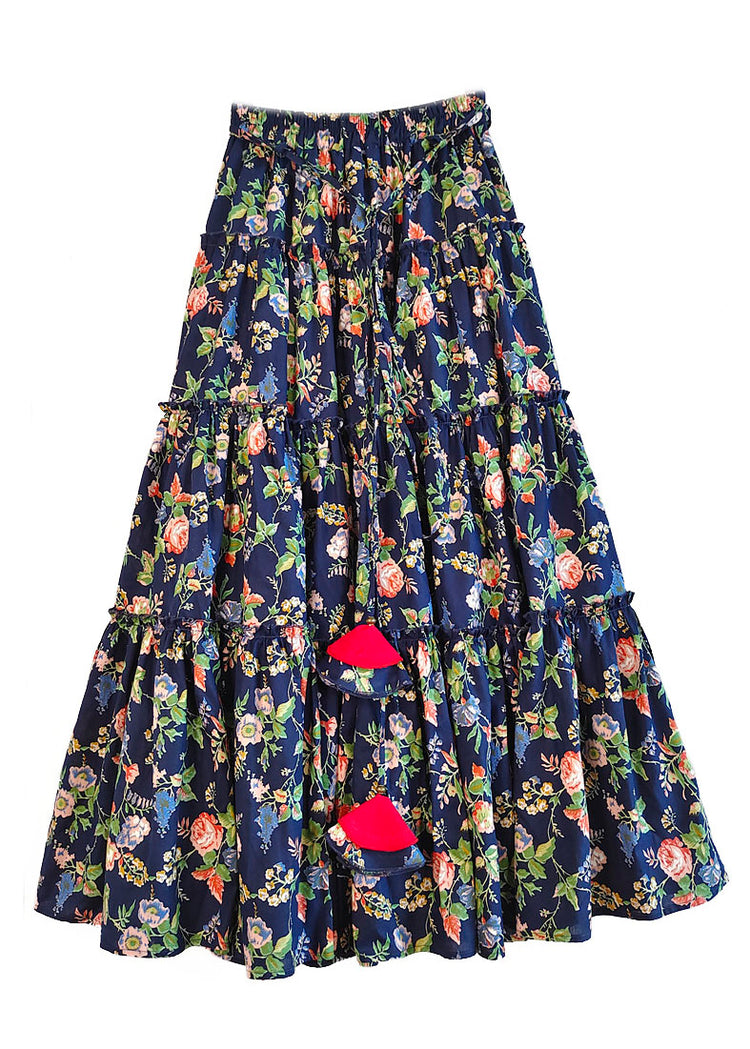 Italian Ruffled Patchwork Elastic Waist Long Skirt