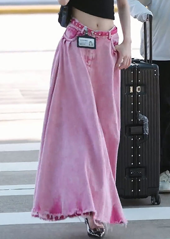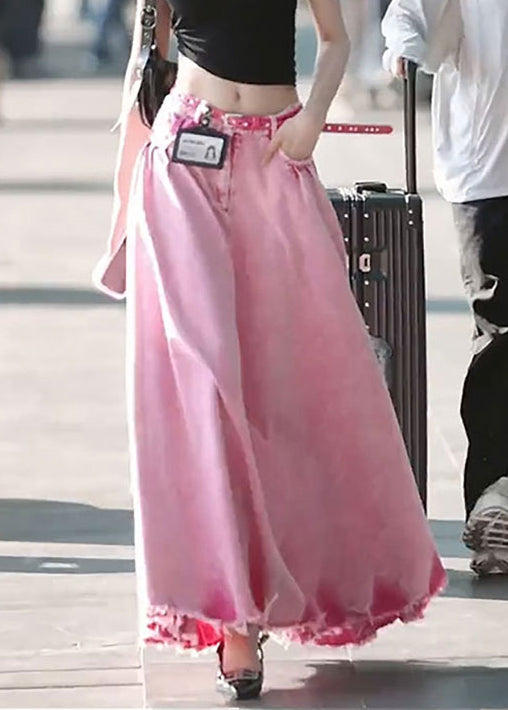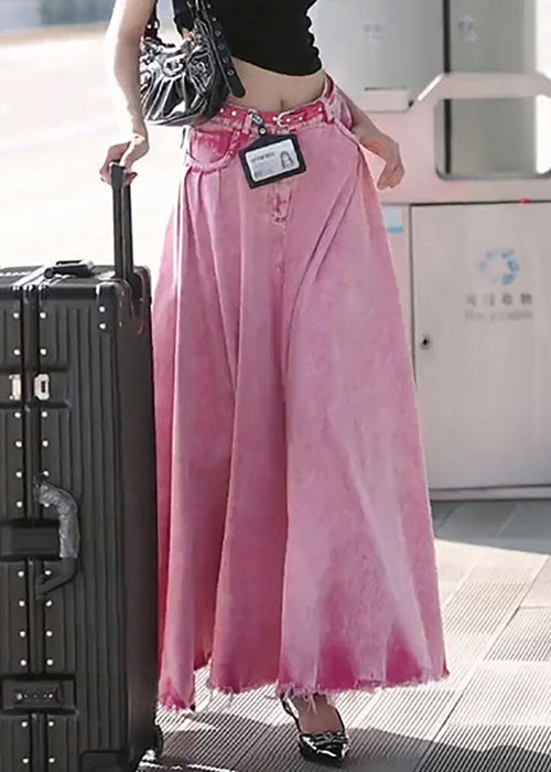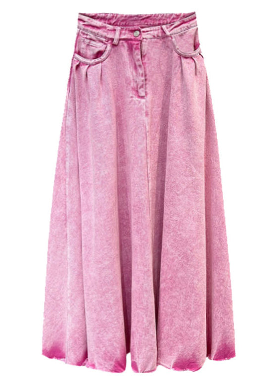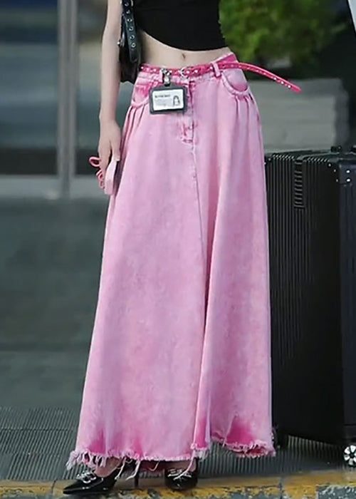 Modern Pink Pockets High Waist Denim Skirts Summer