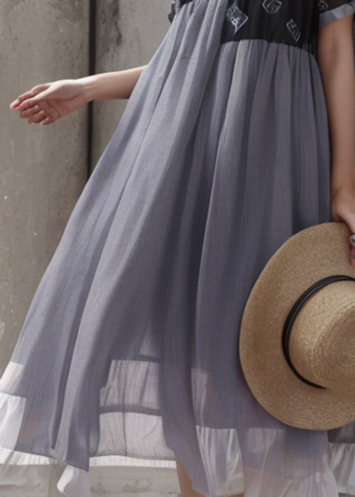 Stylish Black Asymmetrical Patchwork Cotton Dresses Summer