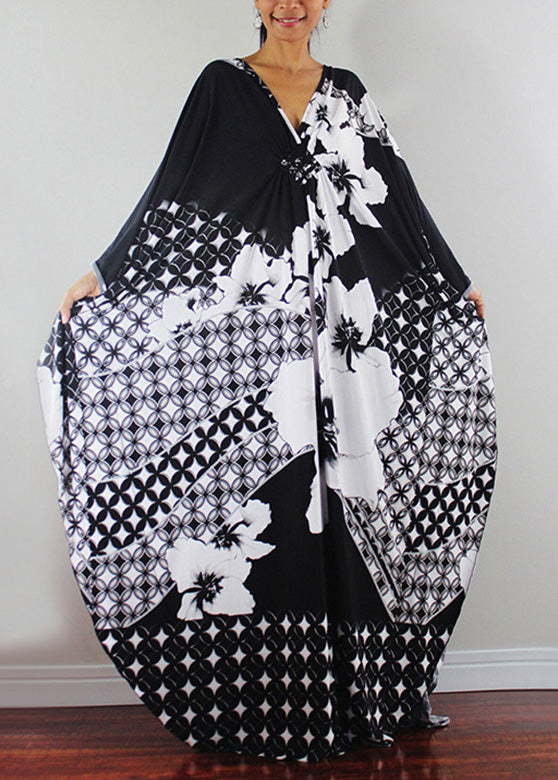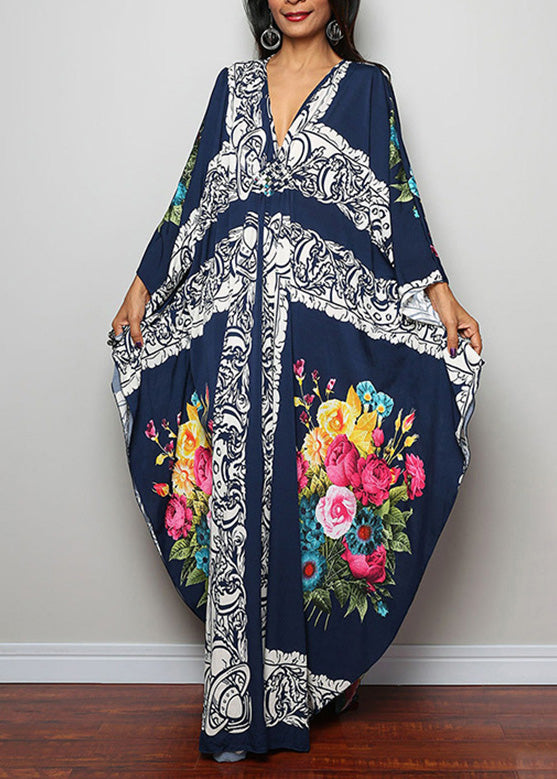 Elegant Multicolor Striped V Neck Beach Long Dress Long Sleeve