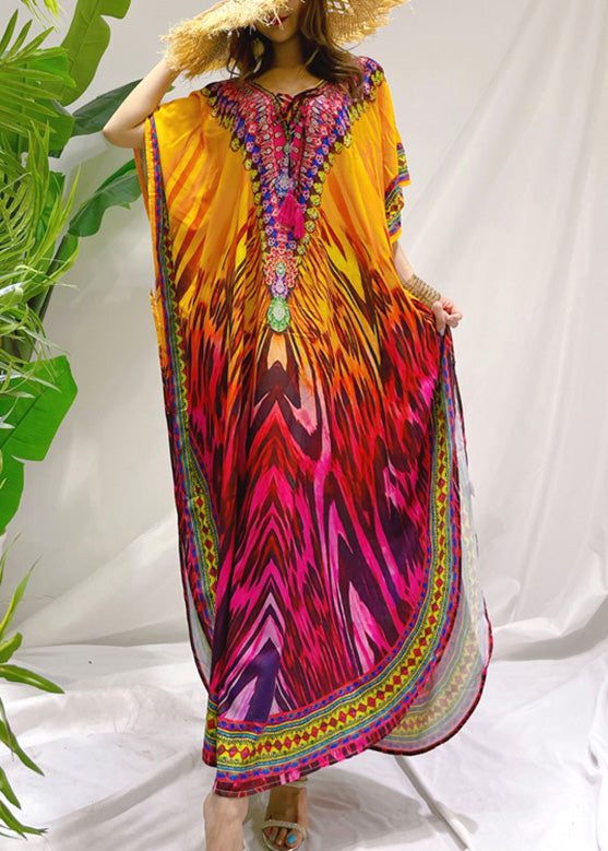 Gradient Color O-Neck Print Sequins Maxi Holiday Dress Batwing Sleeve