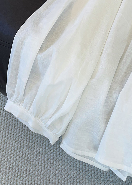 Art White Lace Up Solid Cotton Blouses Butterfly Sleeve