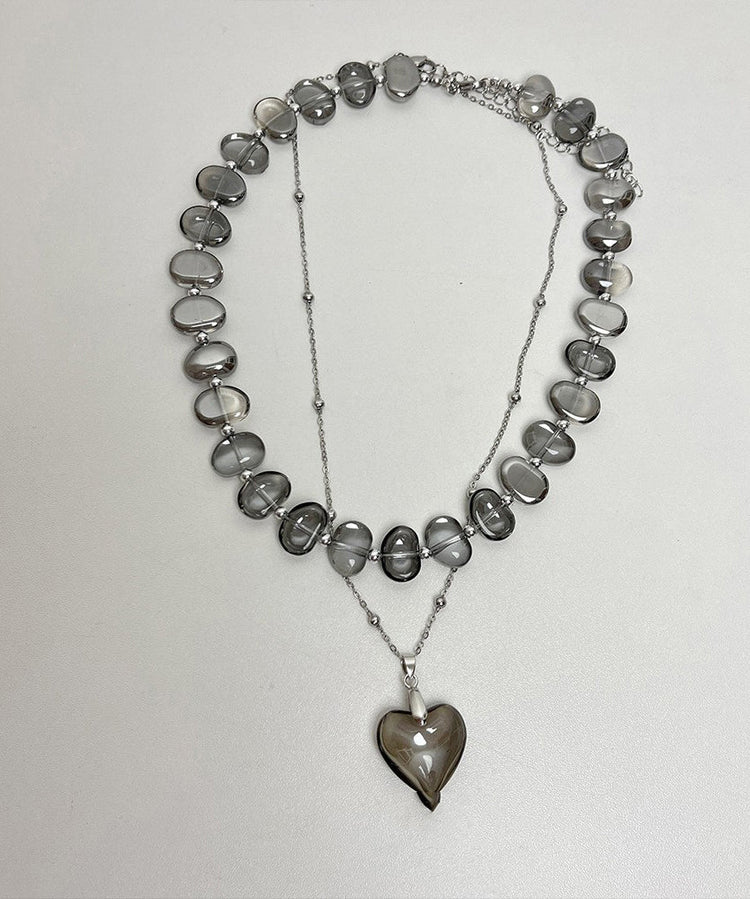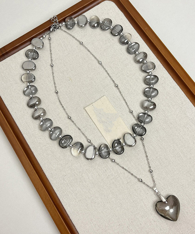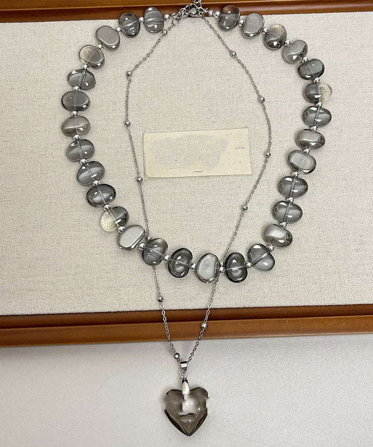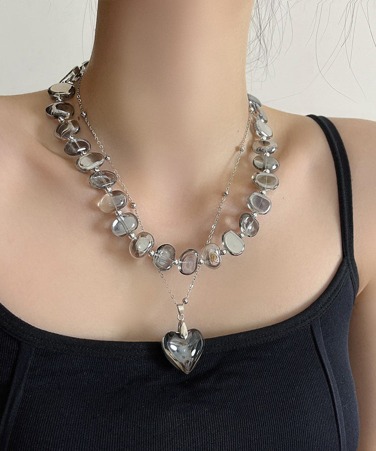 Modern Grey Metal Alloy Acrylic Asymmetrical Crystal Double Layer Love Pendant Necklace
