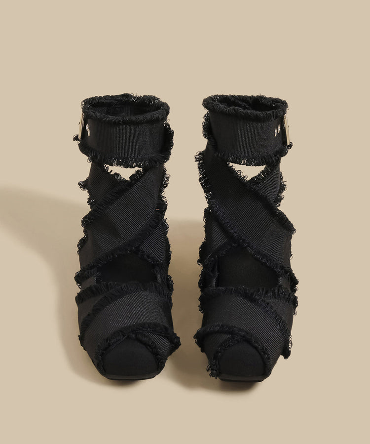 Pink Cotton Fabric Tassel Splicing Cross Strap Flats