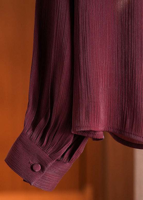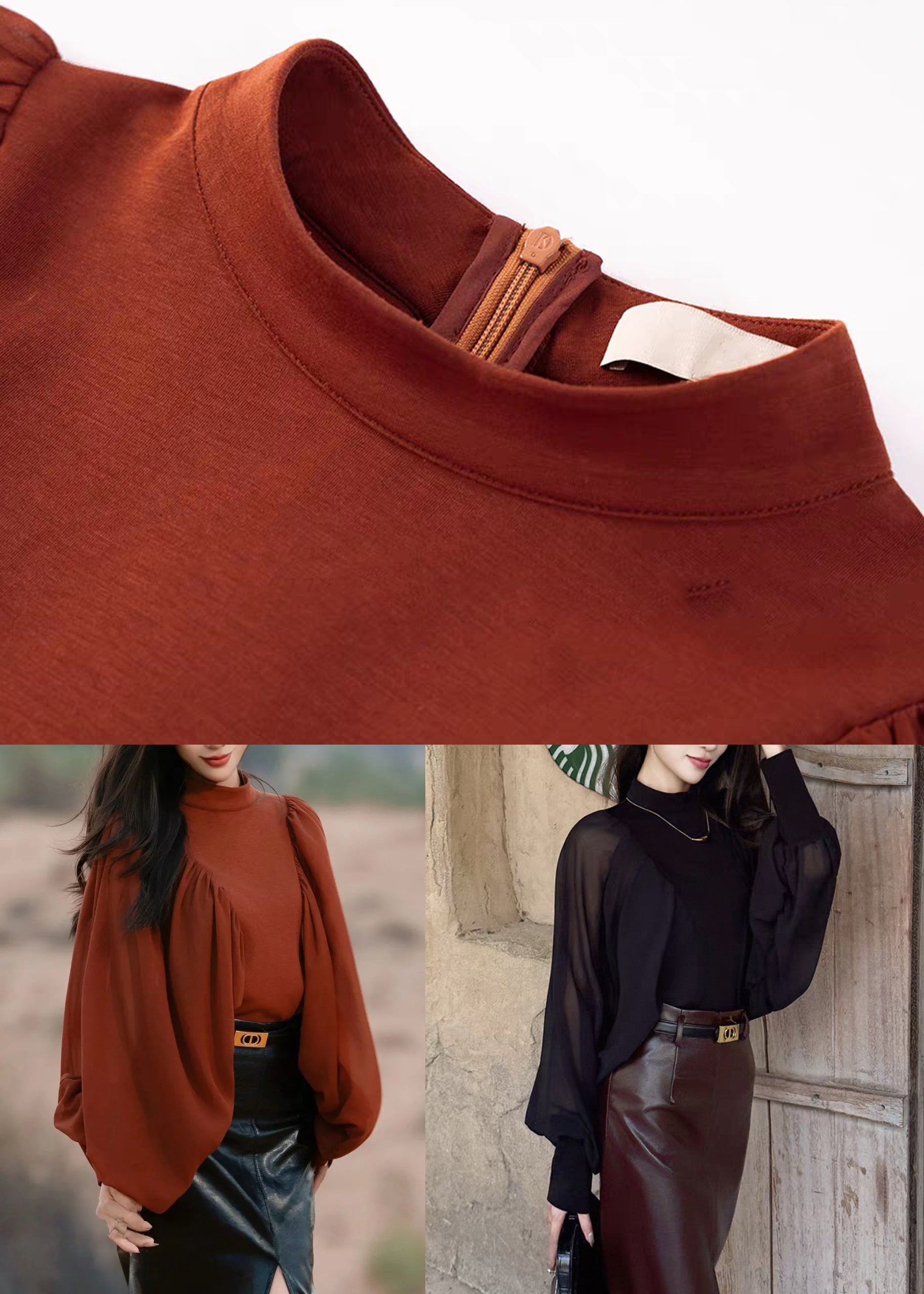 New Red Wrinkled Zippered Solid Chiffon Patchwork Blouses Fall