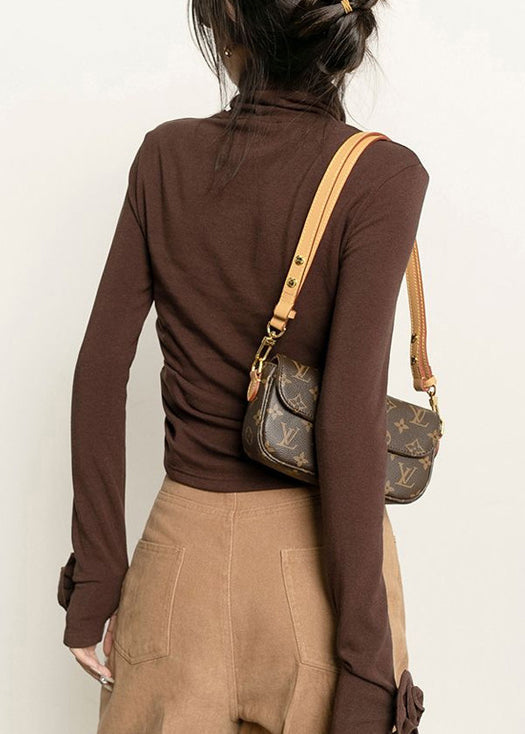 Slim Fit Coffee Turtleneck Floral Solid Cotton T Shirts Fall
