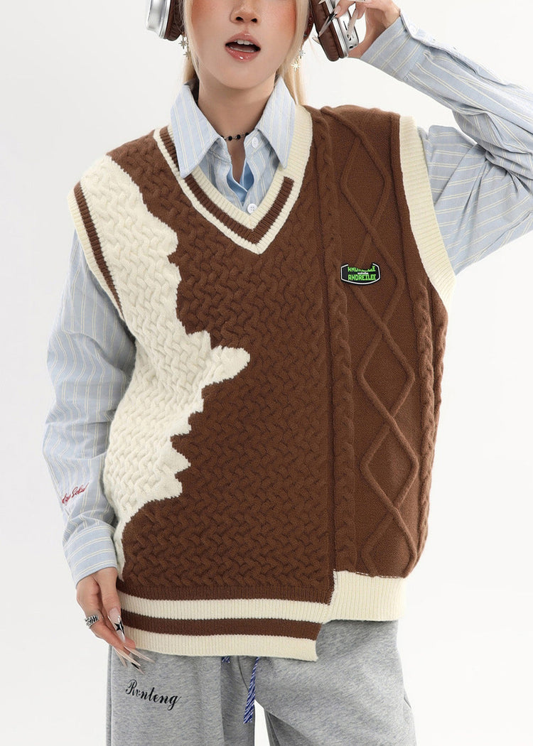 Casual Brown Asymmetrical Warm Knit Sweater Tops Winter
