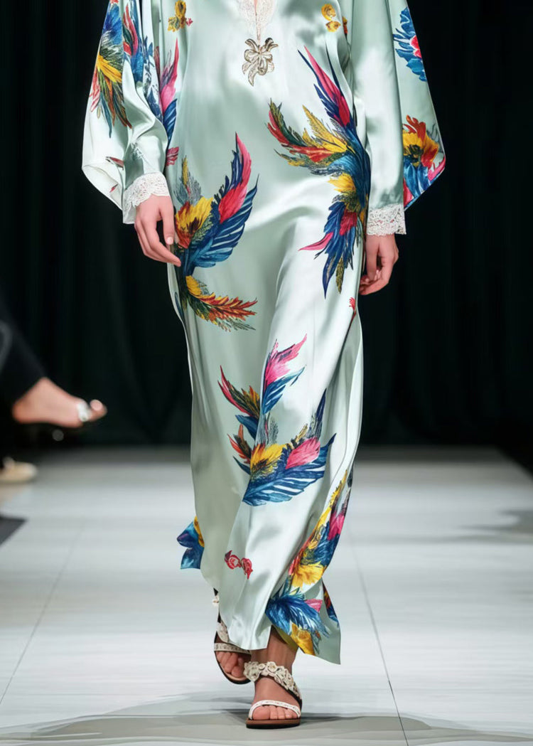 Italian Phoenix Print Patchwork Lace Loose Dresses Spring