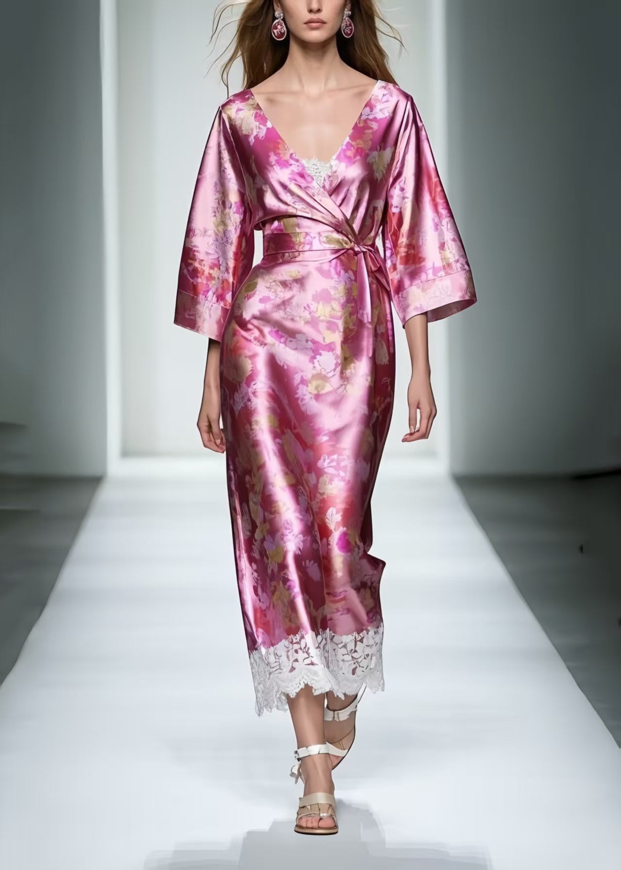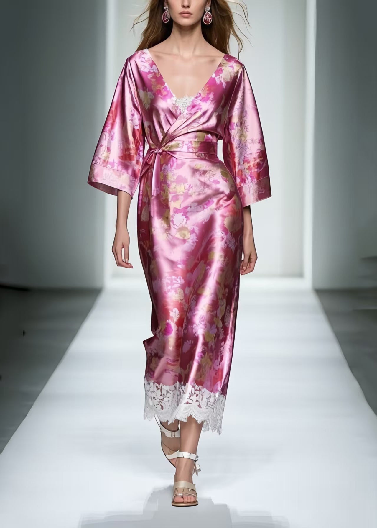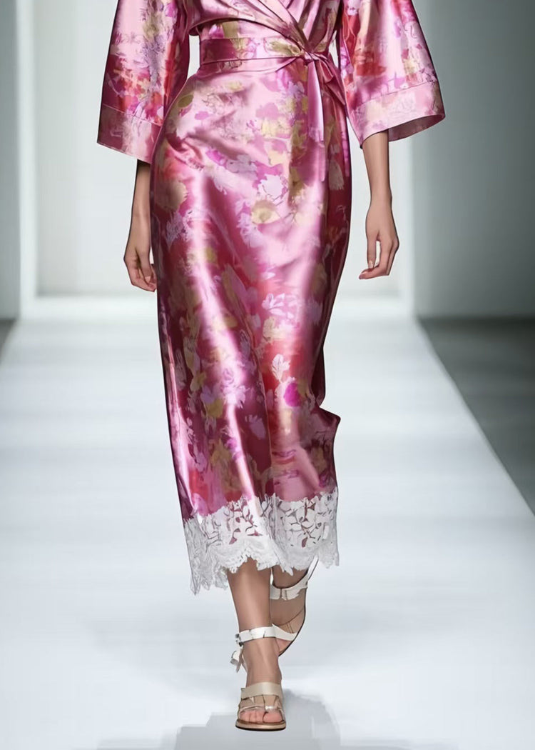 Plus Size Rose Tie Waist Patchwork Lace Long Dresses Summer