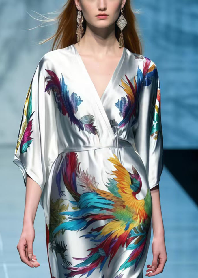 Simple Grey Phoenix Print Patchwork Lace Dress Summer