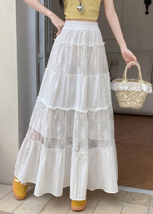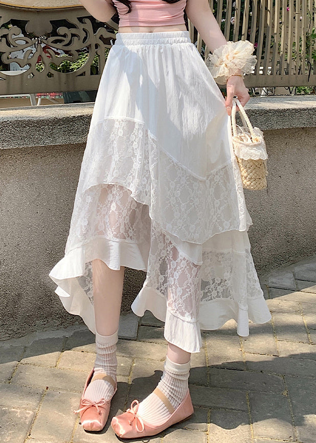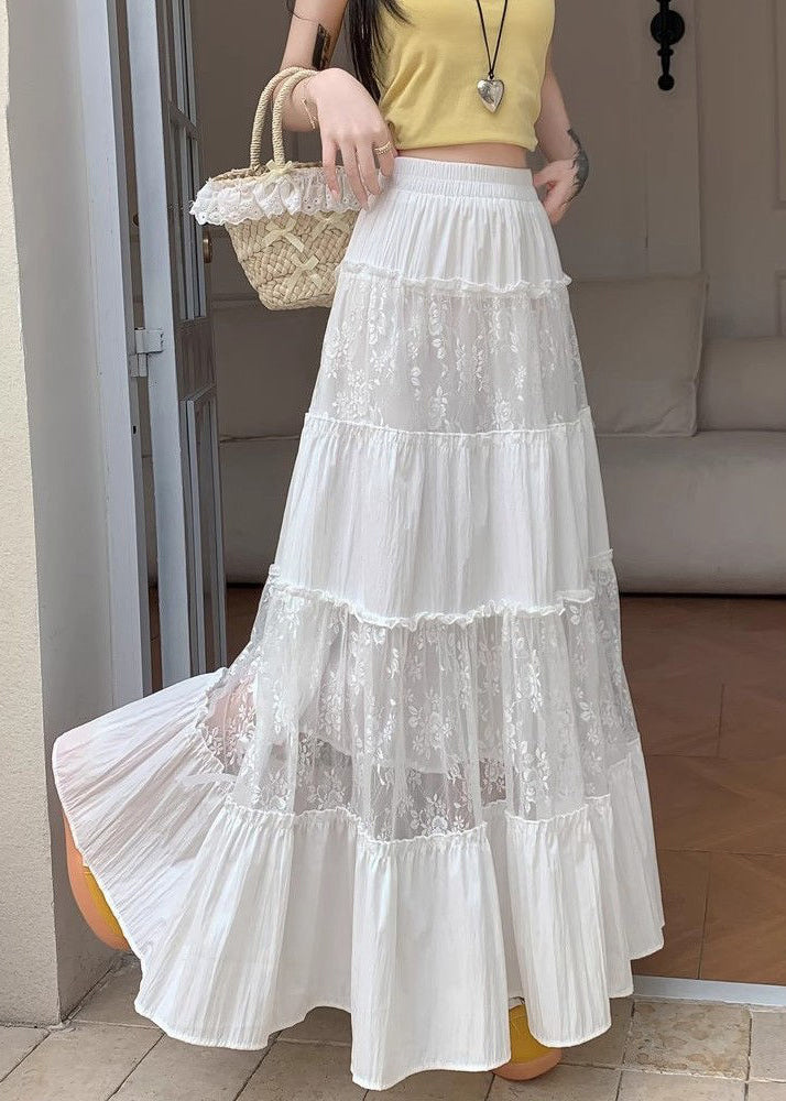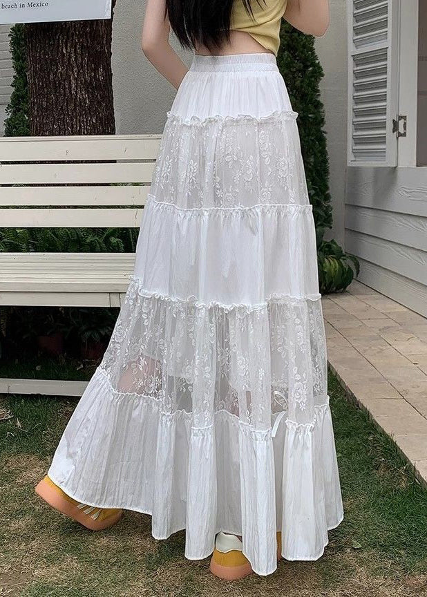 Art White Lace Tulle Patchwork Elastic Waist Skirt Summer