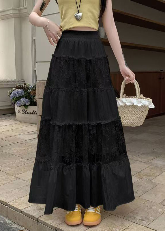 Black Original Design Lace Summer Tulle Skirts Elastic Waist