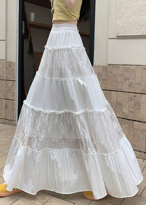Elegant White Lace Hollow Out Tulle Skirt Summer