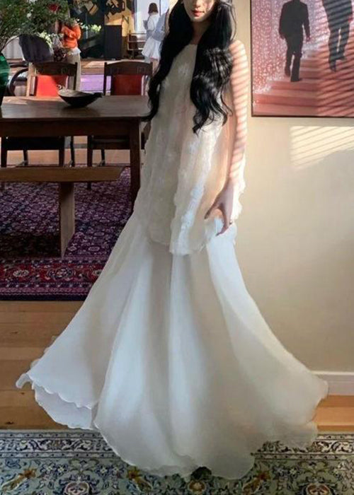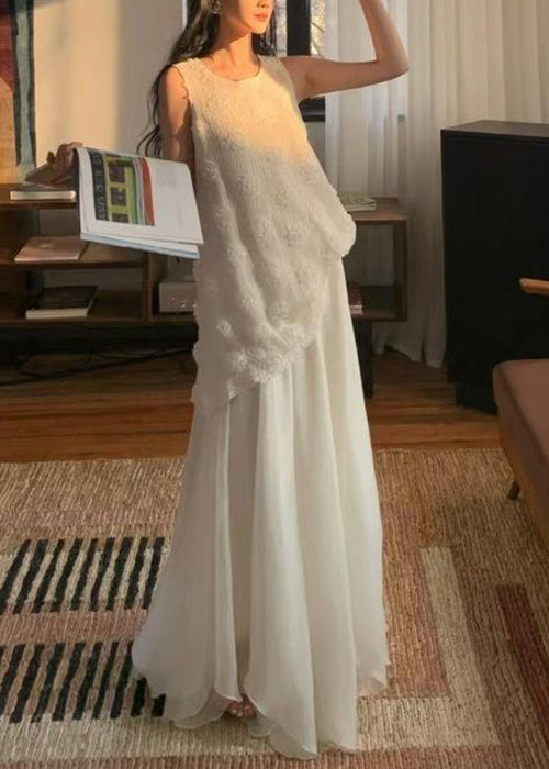 Original White Floral Tops And Skirts Two Piece Set Sleeveless