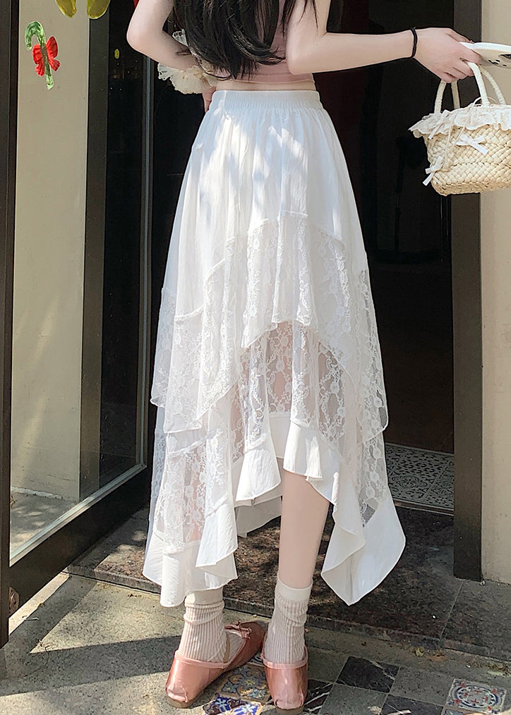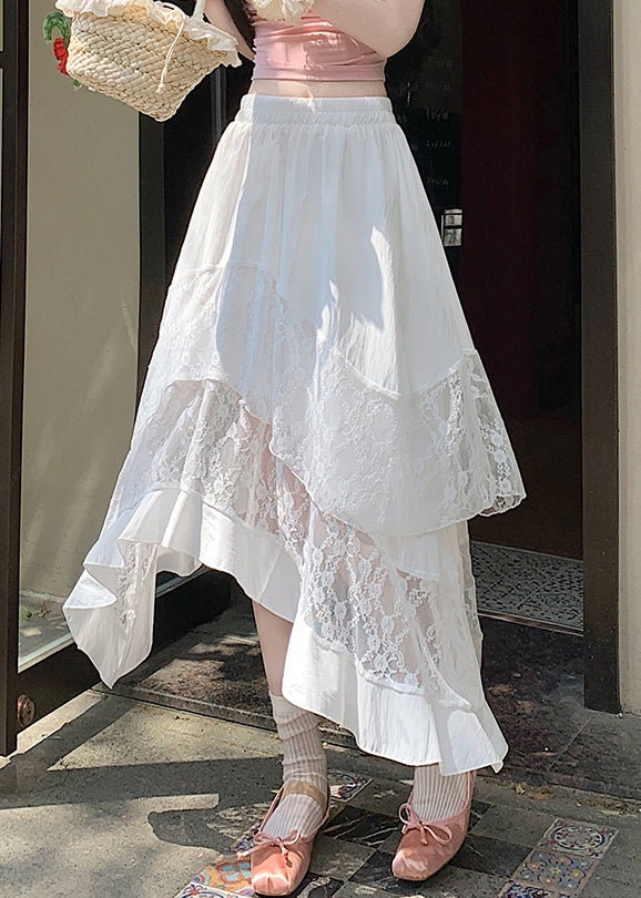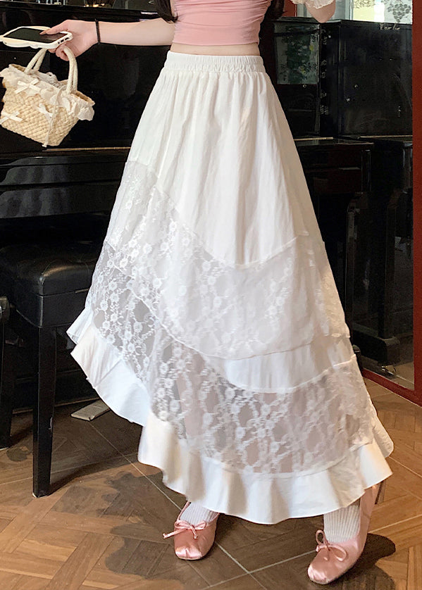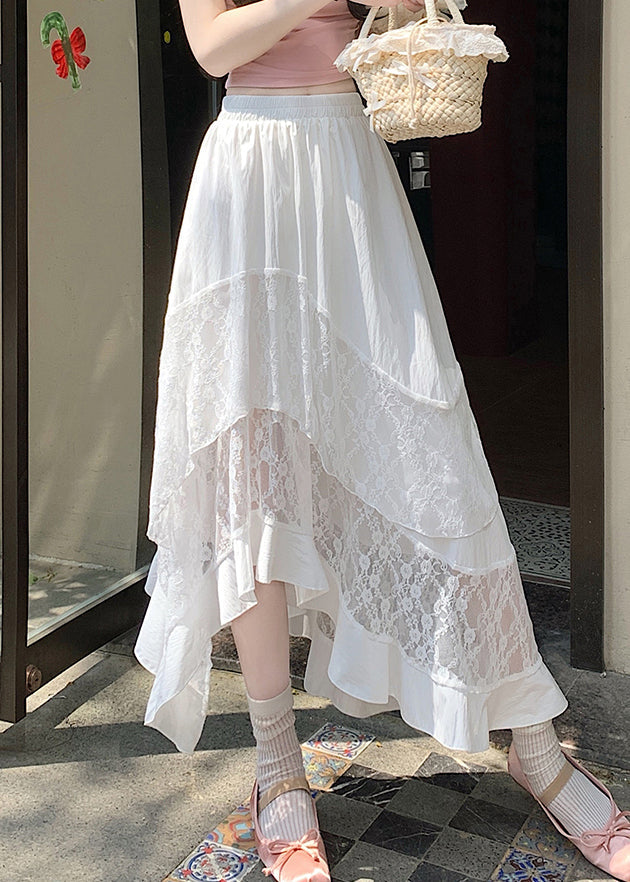 White Elastic Waist Patchwork Cotton Summer Skirts Asymmetrical