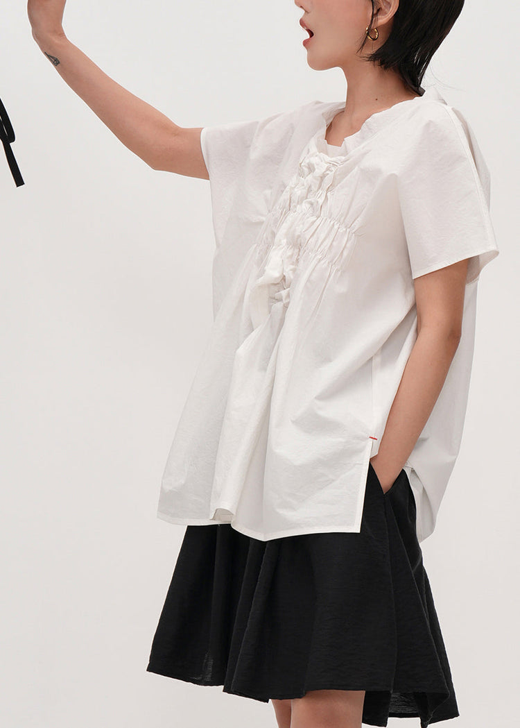 Fashion White Oversized Wrinkled Cotton Tank Tops Summer