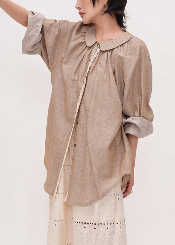 Loose Peter Pan Collar Button Cotton Shirts Fall