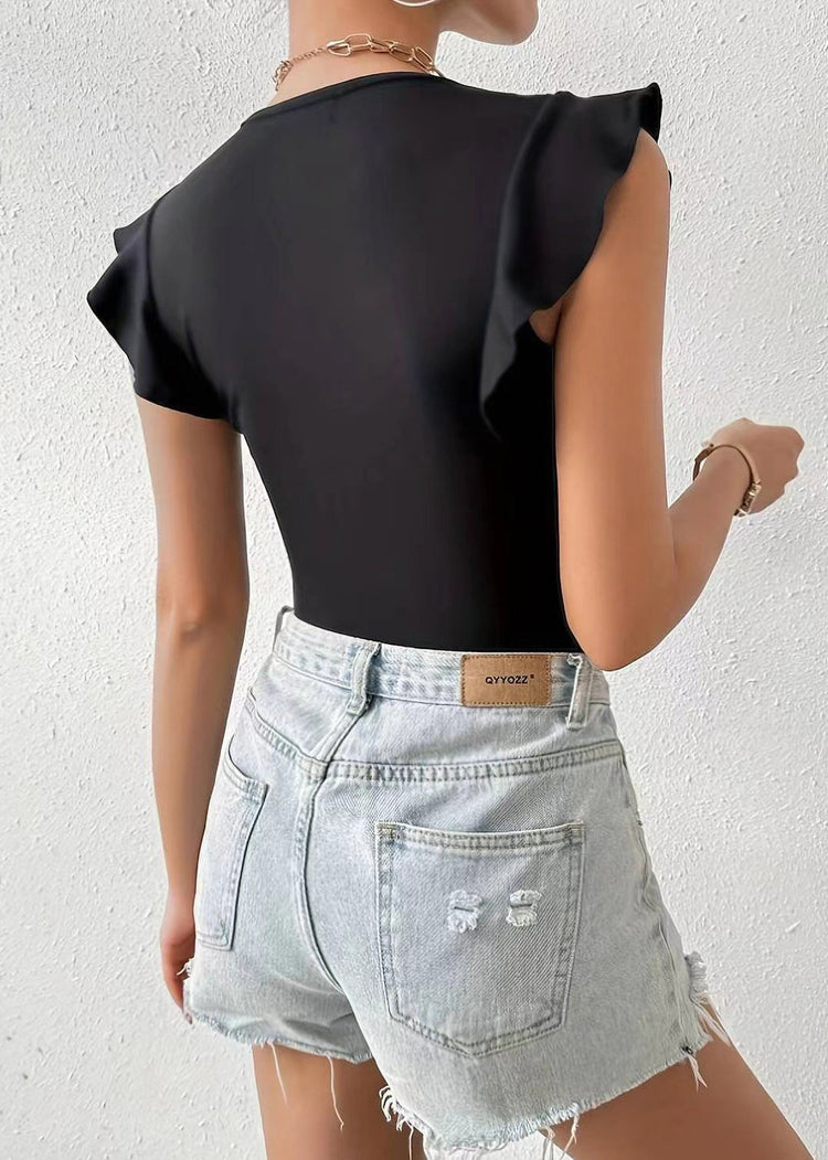 Silm Fit Black V Neck Spandex Tank Tops Butterfly Sleeve
