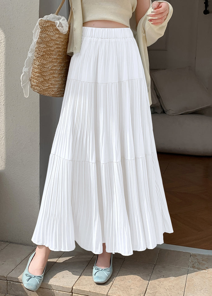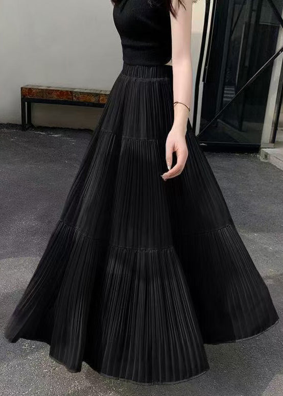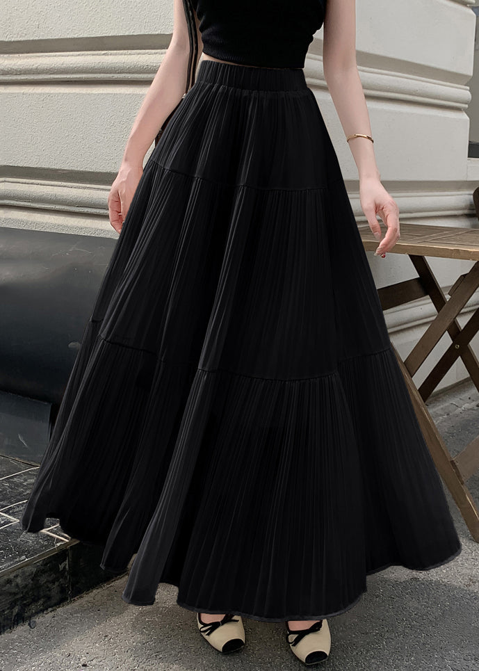 Women Black Wrinkled Elastic Waist Chiffon Skirt Summer