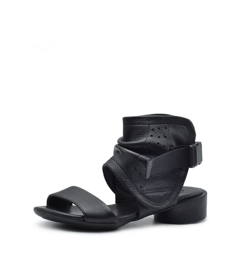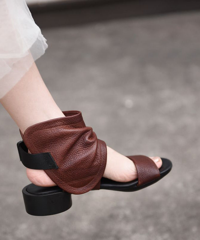 Brown Cowhide Leather Splicing Sandals Hollow Out Peep Toe