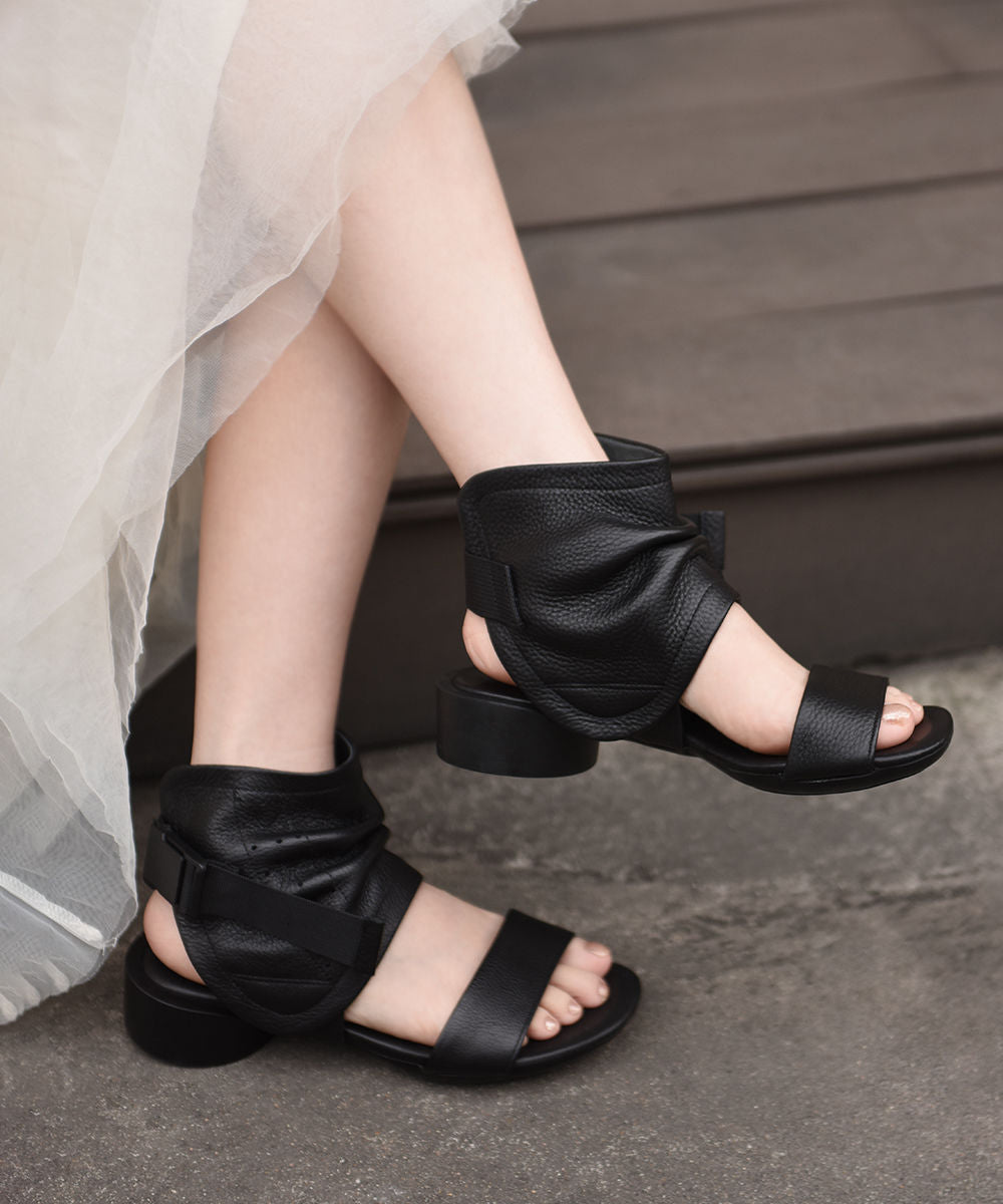 Black Cowhide Leather Comfortable Splicing Zircon Sandals