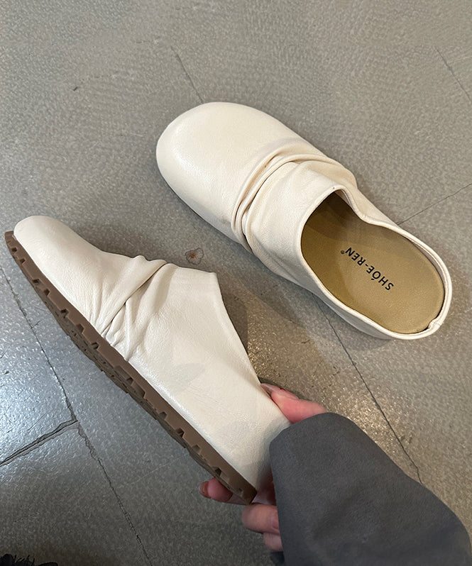 Apricot Cowhide Leather Splicing Slide Sandals Peep Toe