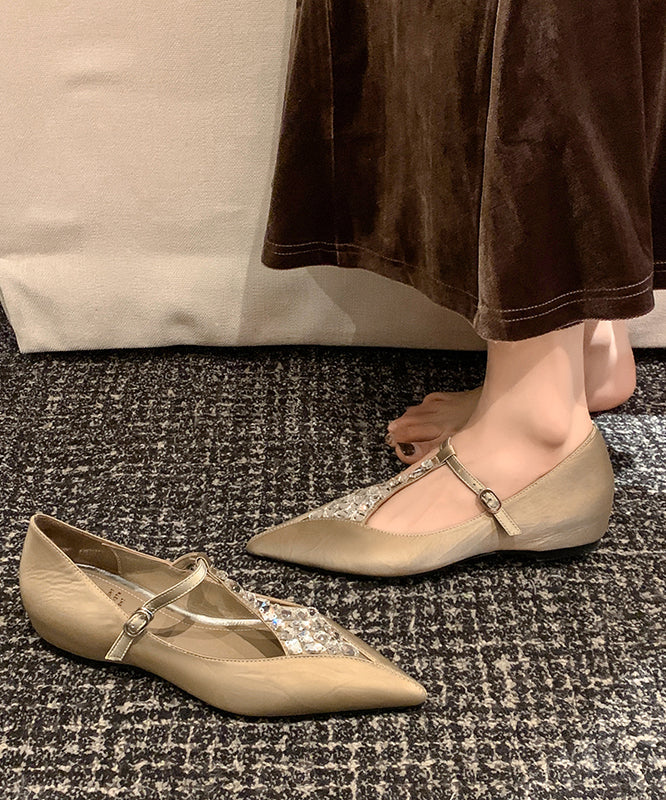 New Fashion Apricot Zircon Cowhide Leather Wedge Pointed Toe