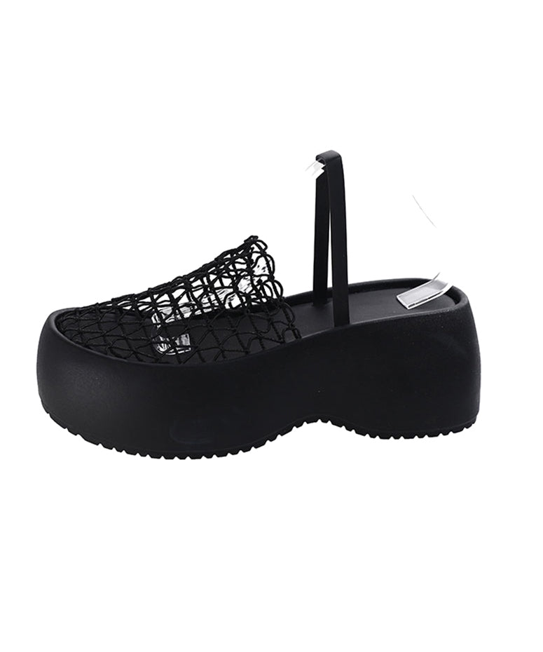 Stylish Splicing Platform Black Breathable Mesh Slide Sandals