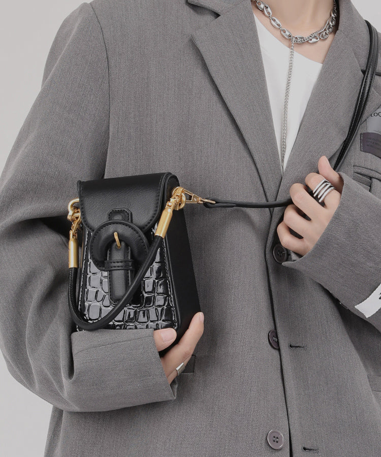 Boutique Black Solid Durable Faux Leather Phone Pouch